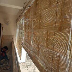 Outdoor Bamboo curtains/Blinds are used in balconies, Terrace, Utility, and other large open areas to get protection from Harsh Sunlight, Rain, and wind. Bamboo Blinds are made with 100% natural bamboo. The Rolling mechanism makes it easy to use and allows you to roll & stop the blinds anywhere.