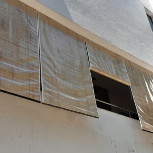 Adding a transparent sheet to the bamboo curtains can enhance their functionality and aesthetic appeal. The transparent sheet can be made of materials such as PVC or polyester, which are both durable and weather-resistant.